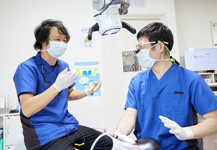 アットホームな雰囲気治療方針のディスカッションを行うなど、スタッフ全員で患者様に寄り添うことを大切に協力しながら取り組んでいます。わからないことなどはしっかりサポートしていきます。また、補綴治療は複数の技工所と連携しているなど、外部との繋がりも多く、風通しの良い雰囲気が魅力です。